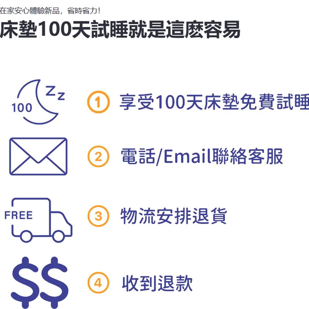 • **試睡保障**:100 晚在家試睡,不適合可申請全額退款