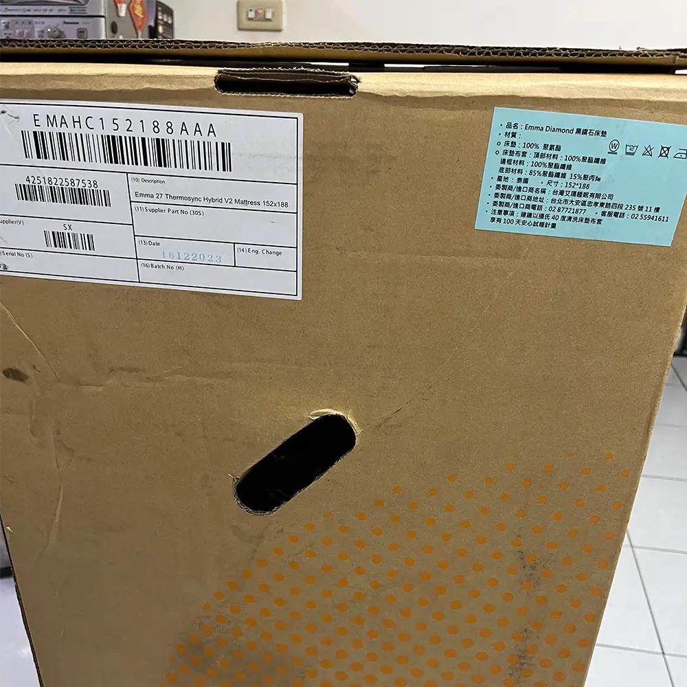 收到 Emma 石墨烯黑鑽床墊的當下,第一個感受就是「這箱子比想像中重多了」!床墊以真空捲筒壓縮的方式送達,外箱雖然體積不大,但重量可不輕,建議千萬不要逞強單人搬運。值得稱讚的是,Emma 有提供免費搬樓與定位安裝服務,對於住在沒有電梯的公寓來說真的是大大加分,我家住四樓完全不用擔心。