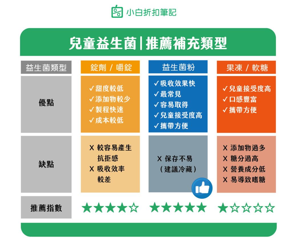 | 3 | BHK's 安寶適益生菌粉 | 益生菌粉 | NT$500~NT$800 | 嬰幼兒至兒童 | 添加維生素D助鈣吸收 | — |