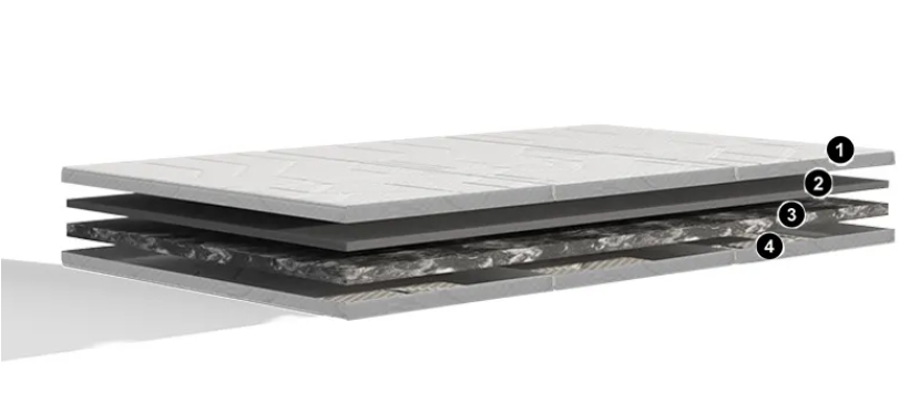 最後就是床墊內部的介紹啦!扣除表布後床墊內部共計有2層。其中最底部就是超透氣速乾布套此款布套為可拆洗的彈性布料,超透氣、可拆卸、可清洗的外套,能幫助黑鑽石棉層散熱,保證床墊的透氣性。另外的二層分別是石墨烯黑鑽石涼感棉層、高支撐性HRX棉層,分別有高導熱、透氣、減壓以及支撐的效果。官網有詳細的說明這邊就不再重複